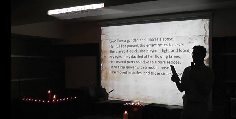 Program, öğrencilerimizin şiir ve görsel sunumları ile başlamıştır. Güz dönemi başından bu yana hazırlanmakta olan öğrencilerimiz, dünya edebiyatından ve İngiliz edebiyatından çeşitli eserleri hem İngilizce hem Türkçe sunmuşlardır.