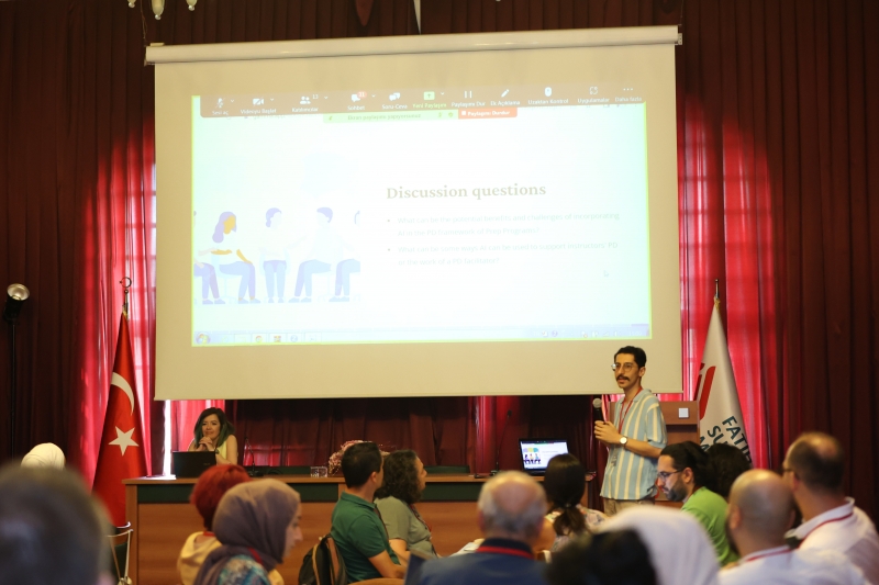 The first Foreign Languages Forum organized by the English Preparatory Program of Fatih Sultan Mehmet Vakıf University, titled "FSMVU First Foreign Languages Forum - Harnessing AI: The Future of Foreign Language Teaching and Learning," was held on July 14, 2023, at the Topkapi Campus. During the forum, discussions were held on the use and implementation of artificial intelligence in language education in preparatory schools and departments at universities in Turkey. Various topics related to foreign language teaching and learning were addressed within the scope of the forum including; curriculum development, instruction, assessment, management, and professional development.